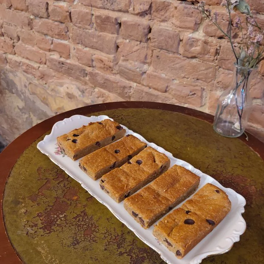 Smeuïge blondies met tahini, chocoladedruppels en een karamelachtige zoetheid.